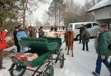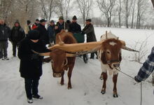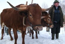 In einem Beitrag von Claus Kropp wurde uns das "Steinmetz-Archiv" vorgestellt. Herr Kroha arbeitet mit 500 Ochsen im städtischen Gut Karlshof und hat davon berichtet. Den Koloman Prem konnten wir dank seiner DVD sehen, wie er mit seinen Ochsen Holz rückt. Weitere (Kurz-)Referate kamen zu den "Ochsentreibern von Arriège" von der Cozette Griffin-Kremer, zu dem letzten "Tag nach der Ernte" in Kommern von Gerd Linden, Axel Göbel zeigte eine von ihm mit dem Gelbviehgespann begleitete Hochzeit, es hatte Bilder von der Anne Wiltafsky und was sie gerade in ihrer Kuhschule macht, es gab ein dickes Fotoalbum mit Bildern vom Westermeier Anton und seinen Ochsen auf den verschiedenen Oktoberfest-Umzügen und dem Gäubodenfest, Bilder von neu angelernten roten Höhenrindern des Heiner Klaas; weiter ging es mit vielen alten Geräten und guten Erklärungen dazu vom Schöny Hubert, der außerdem seine Murbodner - Kreuzungen vorstellte, ferner einem Dokumentar-Film über GOKULA (einer von Hare Krishna Gläubigen betriebenen Landwirtschaft im Norden Londons) gedreht von der Donna Lipowitz und letztendlich vielen Bildern, gemacht und beschrieben vom Edwin Rotzal.