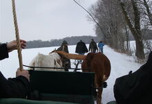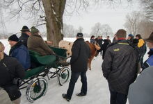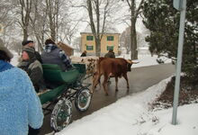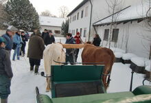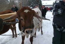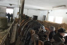 Am Sonntag früh so gegen 10.00 Uhr trafen wir uns dann zum Laufen, bzw. zur Anspannung im Zengermoos. Vorgestellt wurde das amerikanische Halsjoch in der Anspannung. Geduldig gezeigt wie es funktioniert haben es uns Hanna und Zeno, beides Texas Longhorn Rinder im 2. Jahr. Die Mäuse hatten im Schnee ganz schön zu ziehen aber wären sie steckengeblieben, hätte es genug Helfer gegeben. Die Anne hat dann nochmals die Besonderheiten dieser Anspannung im Detail veranschaulicht. Im Stall war Anschauungsunterricht vorbereitet: gesammelte Rinder - Anspannungsmöglichkeiten ...