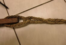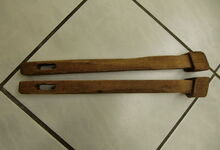 Die vermutlich ursprünglichere Art, da ohne großen Aufwand selbst anzufertigen. Das Joch besteht aus einem rechteckigen Brett mit je einem Loch an jedem Ende. Durch diese Löcher werden von vorn im schrägen Winkel nach außen Holzzapfen geführt, deren dickes Ende ein Durchrutschen verhindert. Am schmalen Ende des Holzzapfens werden die Zugstränge entweder direkt verknüpft (durch Loch im Zapfen) oder indirekt über zusätzlich angebrachte eiserne Ösen. 2 Riemen halten das Joch an den Hörnern. Unbedingt notwendig: eine gute Polsterung, weil das Brett weiter keine Anpassung an die Stirn erfährt; dafür vorgezogen wurden Seegras und Pferdehaare, alles andere wurde als Polstermaterial bald unbrauchbar, weil unter dem Joch immer wieder Schweiß stand; mit ein Grund warum diese Polster gern mit Tuch, aber auch Leder überzogen waren.