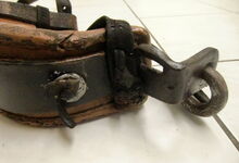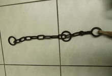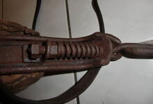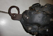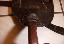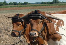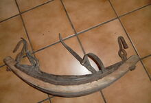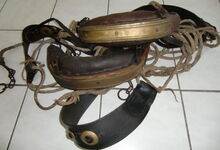 Sattlermeister Schöttler (Falkenrehde) hatte unter anderem ein eisernes Stirnjoch auf dem Markt, welches statt der üblichen Seegras bzw. Pferdehaarpolsterung im Lederüberzug eine Filzeinlage mit einer starken Gummiplatte hatte.