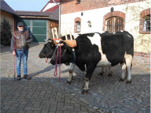 Der Ochsentransport wird von dem Eigentümer der Ochsen, Jürgen Schlüter, von der Rinderschule Schlüter aus Sonnewalde geführt.