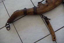 Dieses Joch ist eine Weiterentwicklung des eisernen Widerristjochs und waren i.d.R. für Ochsen und schweren Zug in Gebrauch.